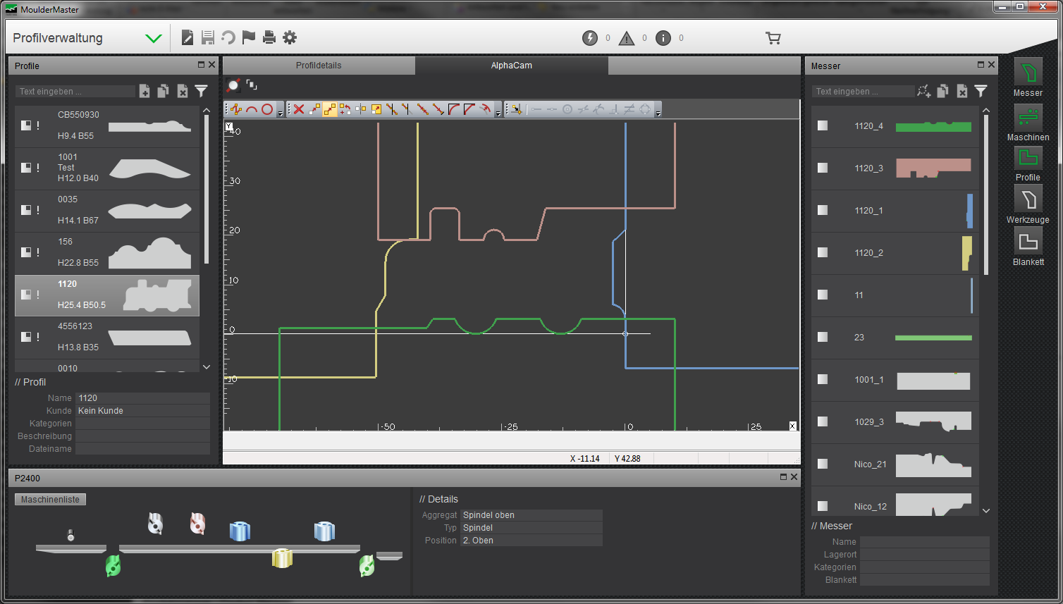 Sama ostrzarka jednak w tym wypadku nie wystarczy. Aby funkcjonowała prawidłowo niezbędny jest program MoulderMaster w którym tworzy się profile narzędzi oraz system pomiarowy OptiControl Digital, który sprawdza efekt pracy Rondamata i zapisuje nowe wartości promieniowe i osiowe narzędzia. Dane z OptiControla mogą zostać wysłane bezpośrednio na strugarkę Weiniga jeśli posiada system sterowania PowerCom lub wydrukowane jeśli mamy do czynienia ze strugarką z innym oprogramowaniem.