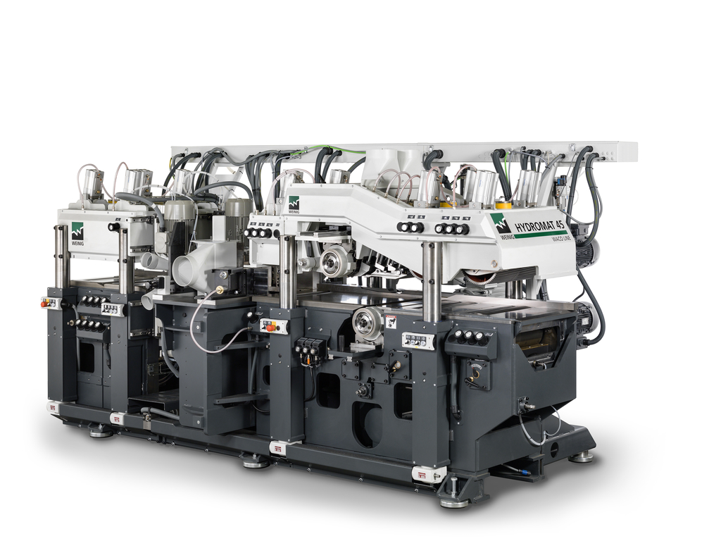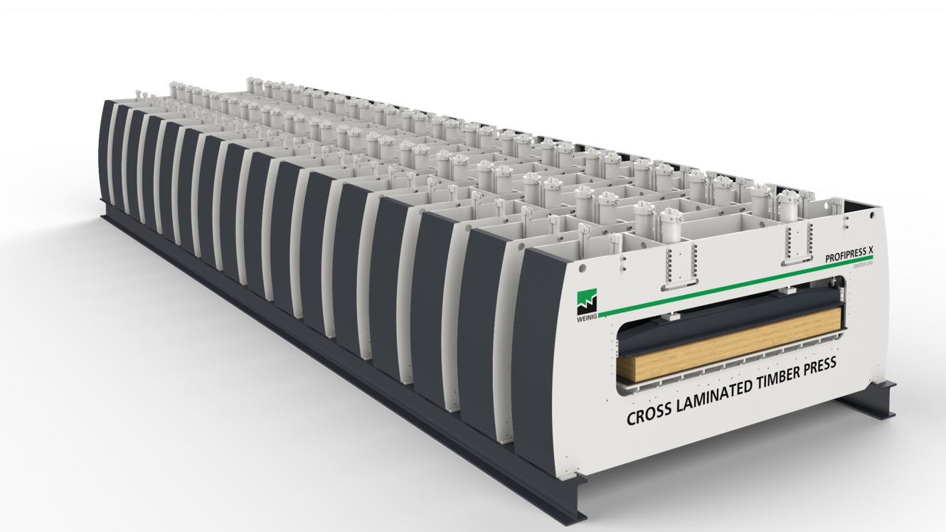 Nie jest tajemnicą, że Weinig mocno umacnia się w segmencie maszyn do drewna konstrukcyjnego. Od bardzo dawna w ofercie były już strugarki do obróbki elemntów o szerokich przekrojach. Podobnie łączarki produkcji Grecona będące sercem zakładów produkujących KVH, CLT, BSH i tym podobne produkty. Nie można oczywiście zapomnieć o maszynach bez, których strugarka ani łączarka na nie wiele by się zdała – optymalizerkach OptiCut 450 XL oraz skanerach wykrywających wady w większych liniach. Krótko mówiąc Weinig od dawna już oferował całe linie do produkcji KVH i pół produktów do CLT, BSH itp. Stosunkowo niedawno do oferty Weiniga dołączyły prasy do produkcji CLT. Prasa ProfiPress X w połączeniu z 2 prasami ProfiPress C stanowią jedne z najszybszych linii do produkcji CLT dostępnych na rynku.