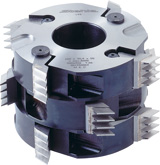 | FREZY LISTKOWE – dają możliwość bardzo dokładnego dopasowania ilości frezów do wysokości materiału. Możliwość wymiany pojedyńczego „listka” z kompletu w przypadku wyłamania zęba np. przez sęk lub kawałek metalu. | ![]() |