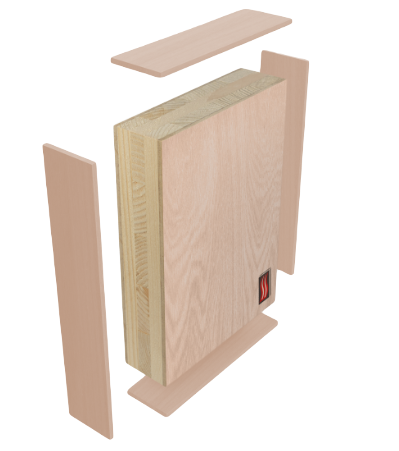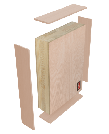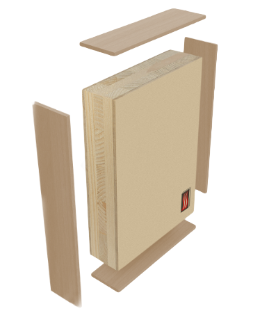 Są to płyty złożone z 3 warstw drewna litego, klasyfikowane 30- i 60-minutową odpornością ogniową, pokryte odporną na działanie warunków atmosferycznych oraz wilgoci, okładziną ze sklejki 4mm (class 3/3 layer Pine core, FSC 100%).